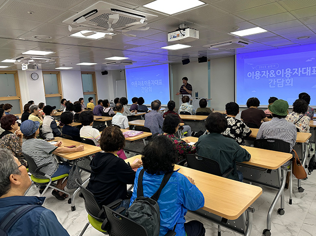 사업안내 · 이용상담 및 회원접수 : 복지관 이용 상담 및 회원 접수 · 욕구조사 및 만족도조사 : 이용자의 서비스 욕구 및 프로그램 만족도 파악을 위한 조사 실시 및 결과 반영 · 이용자 고충처리 : 고충처리 발생 시 접수 및 개선 결과 안내 · 이용자 간담회 : 복지관 안건 논의 및 이용사항 의견 수렴