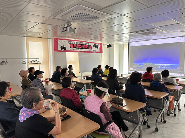 행복광진영화관 어르신들에게 문화 향유 기회를 제공하기 위해 영화 상영을 실시하는 문화여가 프로그램으로 영화 관람을 통해 정서적 만족감을 높이고 회원 간 교류와 소통의 기회를 확대하여 여가활동 활성화를 도모합니다.